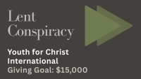 We’re excited to conspire (in a good way) to give to Youth for Christ International during Lent. It's the same giving project in a new giving season! Watch the video about this year's recipient and giving goal. Current Giving: $2545. Will you help us raise $15,000 to give young people everywhere the opportunity to know and follow Jesus? Give in the envelopes on Sundays, text hillcrestcov to 77977 to give from your mobile device, mail your gift to Hillcrest with Lent Conspiracy in the memo line, or give here and select Lent Conspiracy as the giving type. Thank you in advance for how these funds will be put to good use through Youth for Christ International!
